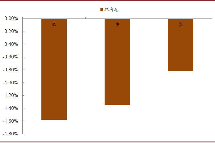 历史业绩稳定增长的公司发布坏消息后跌幅更大:我们以历史业绩增长和标准差对公司进行分组,发现历史业绩增长越高、标准差越小的公司发布坏消息后跌幅越大,可能原因在于历史稳健增长的公司一旦单期业绩较差,更容易形成负向预期差冲击股价。
