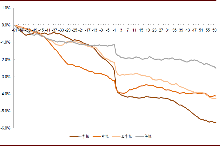 图表: 不同季报期发布业绩坏消息[T+1,T+60]日累计超额收益
