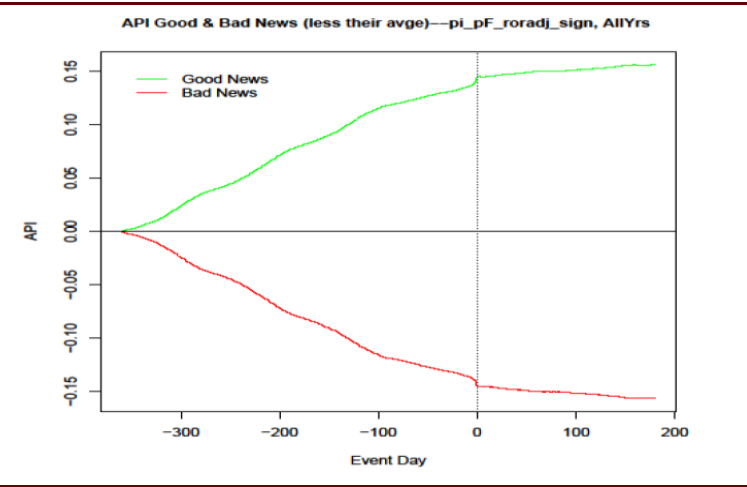 图表: 美国市场(1971-2017)存在明显的PEAD现象:发布好消息和坏消息公司在公告日前后均有异常收益