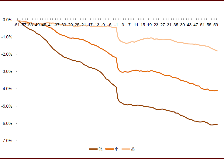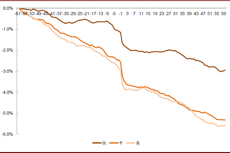 图表: 不同历史业绩增长的个股发布业绩坏消息累计超额收益