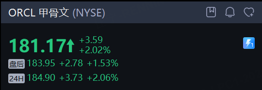 科技股夜盘普涨。甲骨文 涨超2%,AMD、迈威尔科技涨超1%,特斯拉涨近1%。