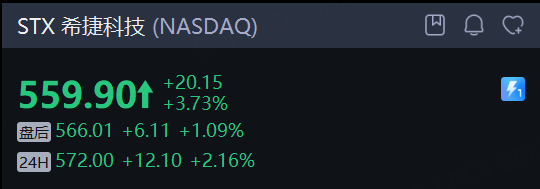 存储概念股夜盘普涨。 希捷科技 涨超2%,闪迪、西部数据、美光科技涨超1%。