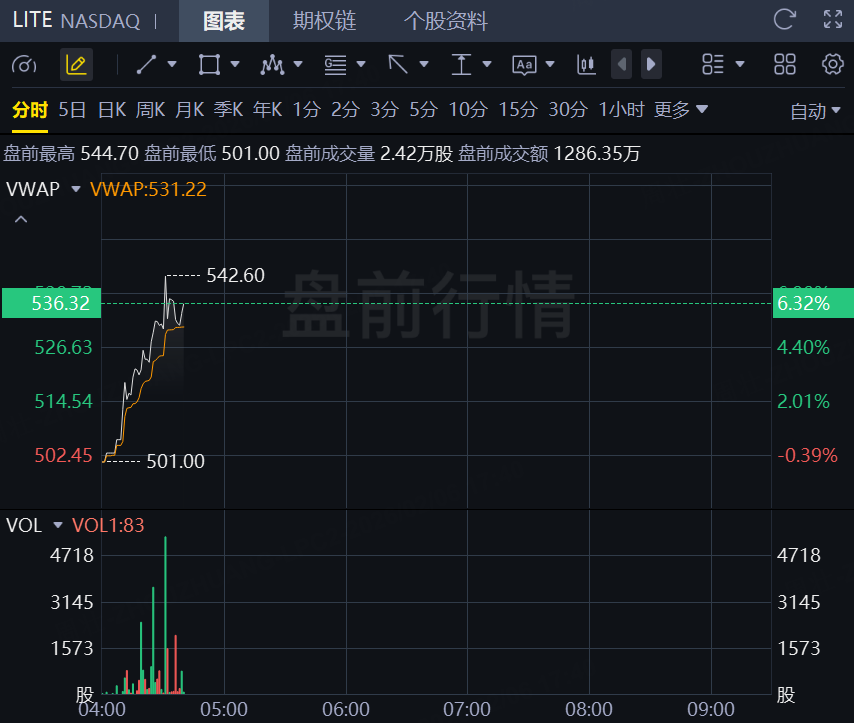 2月6日,美股光通信概念股盘前延续强势,Lumentum涨超6%,Credo Technology、Astera Labs涨超5%,Coherent、康宁涨超3%。