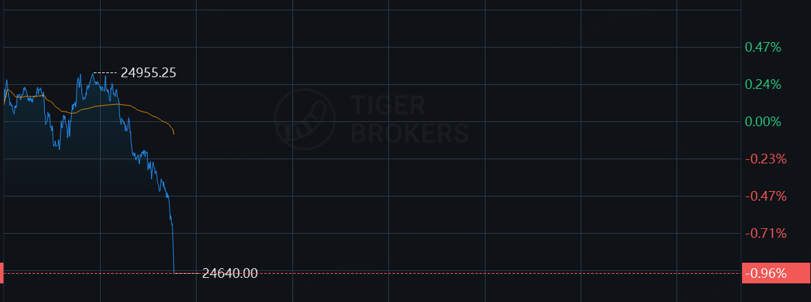 周二午间时段,美股三大指数期货集体“跳水”,截至发稿纳斯达克100指数期货跌幅约1%,标普500指数期货跌超0.7%,道指期货跌超0.5%。