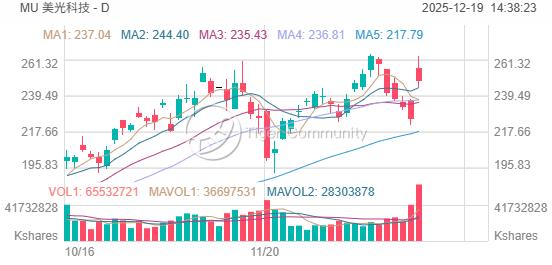 美光股价在周四大涨10%。