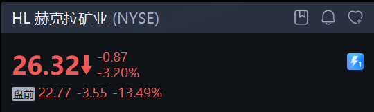 现货白银暴跌超12%,现货黄金跌超6%。相关概念股盘前普遍走低, 2倍做多白银ETF-ProShares 暴跌超24%, 赫克拉矿业 跌超13%, 科尔黛伦矿业 跌超12%, 泛美白银 跌超11%, 哈莫尼黄金 跌超9%, 南方铜业 跌8.9%, 纽曼矿业 跌8%,麦克莫兰铜金 跌6%。