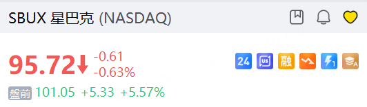 星巴克盘前升逾5%。