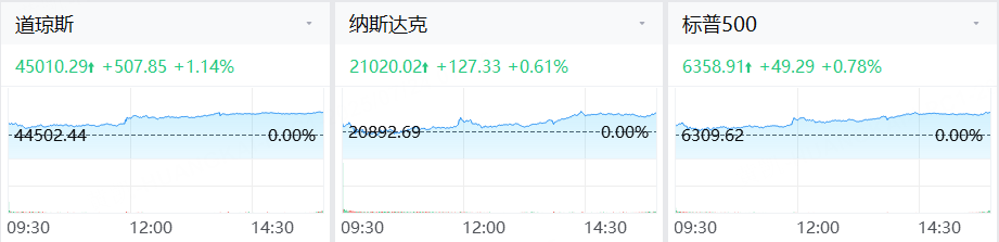 美东时间周三,在美日达成贸易协议以及美欧谈判取得进展的背景下,标普500指数与纳指再创历史新高。截至收盘,道指涨507.85点,涨幅为1.14%,报45010.29点;纳指涨127.33点,涨幅为0.61%,报21020.02点;标普500指数涨49.29点,涨幅为0.78%,报6358.91点。