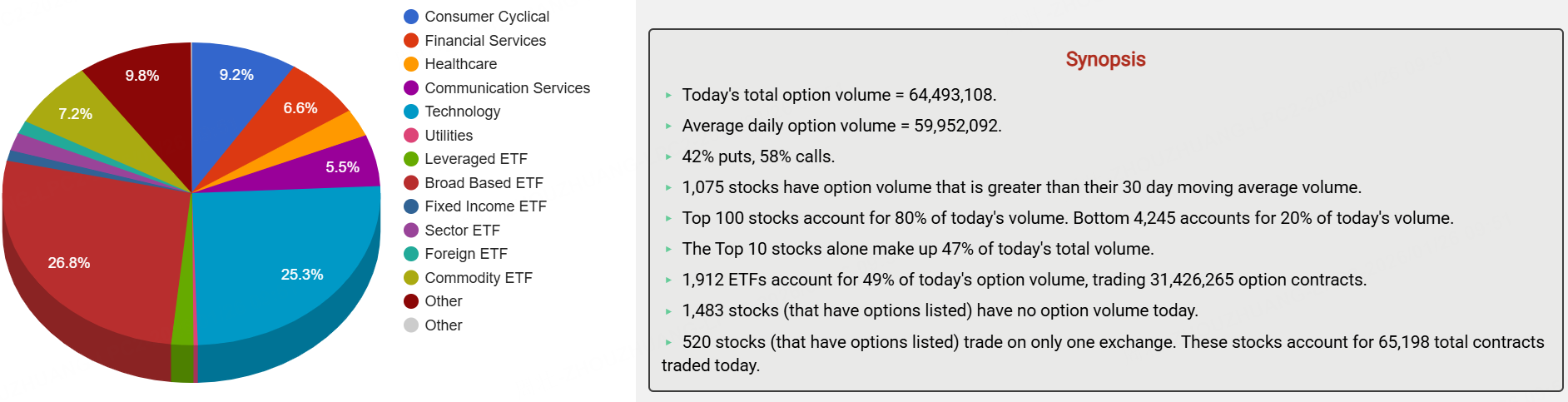 期权市场总成交量6449.31万张合约,环比前一交易日(5906.31万张合约)小幅上涨,并高于90日均量(5995.21万张合约),其中看涨期权占比58%。