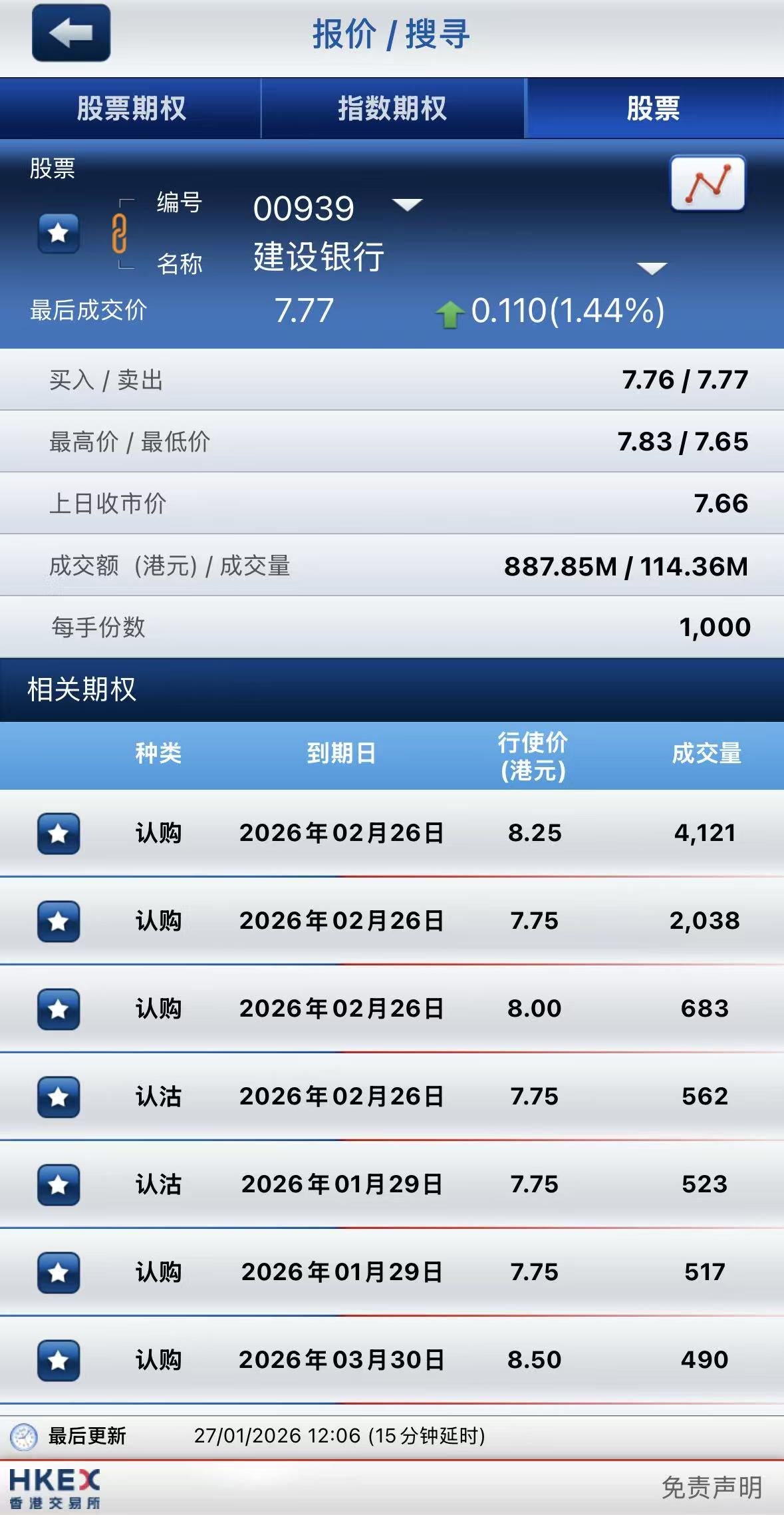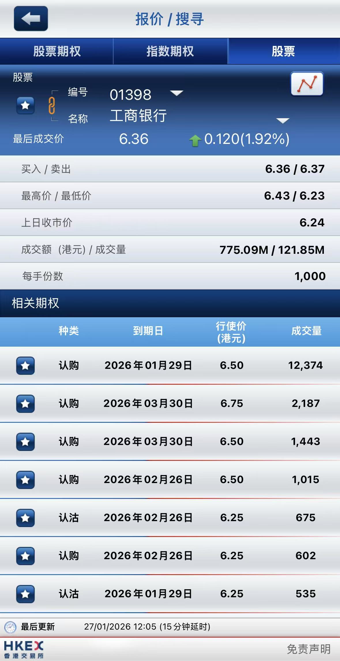 银行股表现活跃,其中工商银行涨近2%,中国银行、建设银行涨超1%;期权方面,工商银行期权成交超2.1万张,其中于1月29日到期行使价6.5港元的认购期权成交居前,成交超1.2万张;中国银行期权成交超1.4万张,其中于3月30日到期行使价4.6港元的认购期权成交居前,成交超2500张;建设银行期权成交超1.2万张,其中于2月26日到期行使价8.25港元的认购期权成交居前,成交超4100张。