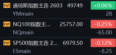 1月7日,美股三大股指期货涨跌不一,截止发稿,道指期货涨0.06%,纳指期货跌0.25%,标普500指数期货跌0.12%。