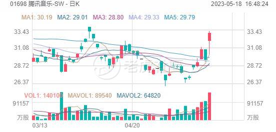 腾讯音乐-SW大涨超12%,公司第一季度总收入70.0亿元,同比增长5.4%;公司权益持有人应占净利润为11.5亿元,同比增长88.5%。