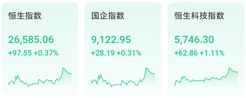权重科技股多数收涨助力大市回暖。其中, 百度集团-SW 、 快手-W 涨超3%,阿里巴巴涨超2%,京东、腾讯小幅收涨。美团、小米集团微跌,网易跌近4%。