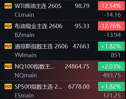 4月8日,美股期指持续走高,纳指期货涨超2%;国际油价跌幅扩大,WTI原油期货、布伦特原油期货均跌超12%;贵金属涨幅扩大,现货黄金涨2.31%,报4813.55美元/盎司;现货白银涨4.74%,报76.42美元/盎司;消息面上,美国总统特朗普宣布同意在两周内暂停对伊朗的轰炸和袭击,这将是一次双向停火。