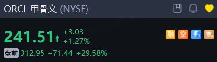 周三, 甲骨文 盘前暴涨超29%,AI业务井喷,手握4550亿美元订单,推出“AI数据库”剑指万亿推理市场。