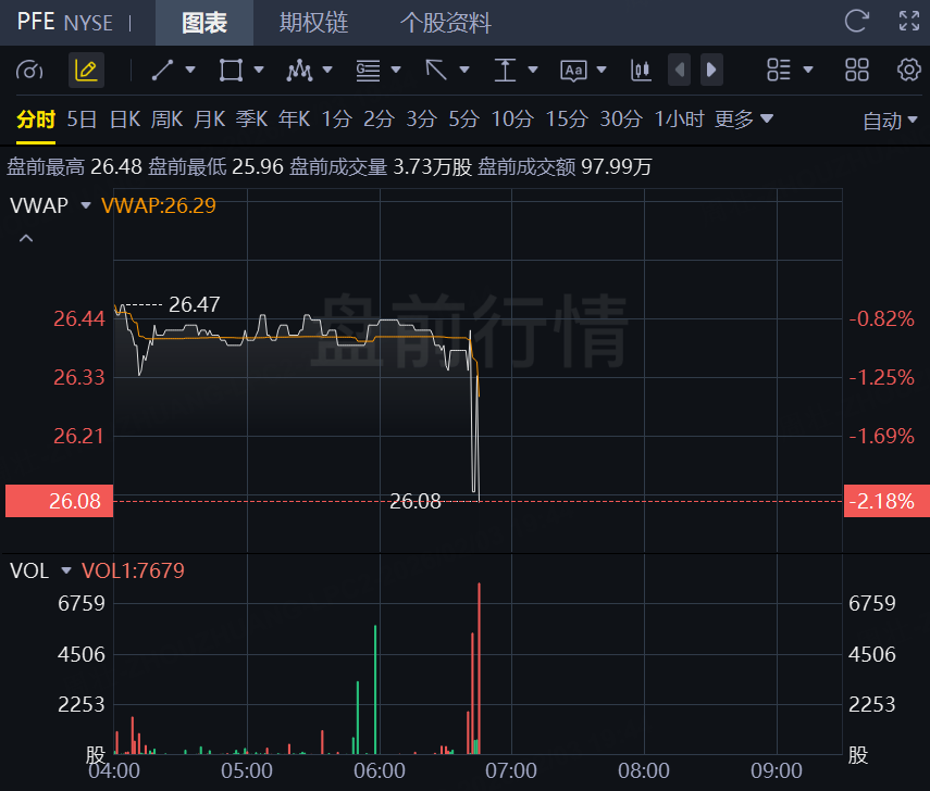 财报发布后,辉瑞盘前跌超2%。