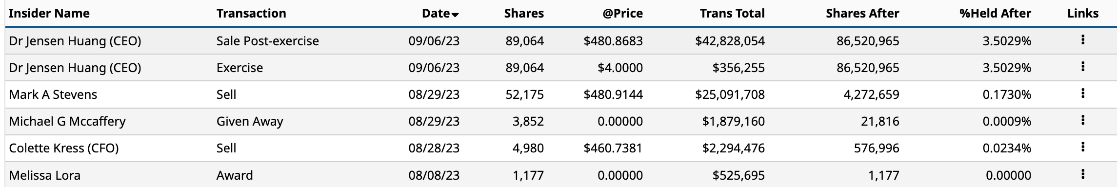 我们很关注英伟达高管的行动,因为这可能反映了公司内部对未来的情绪。下图是八月至今英伟达高管内部交易的信息。