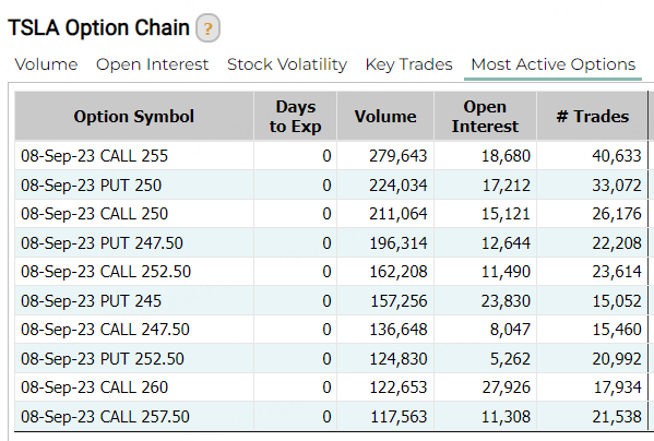 成交方面,特斯拉超过纳指100ETF,罕见地排到了总榜第二的位置。不过,特斯拉当日的走势并不理想,截至收盘跌1.19%。从周五的期权成交上看,大部分的看涨押注是失败的。