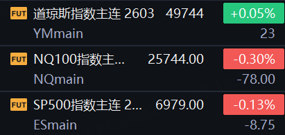 1月7日,美股三大股指期货涨跌不一,截止发稿,道指期货涨0.05%,纳指期货跌0.3%,标普500指数期货跌0.13%。