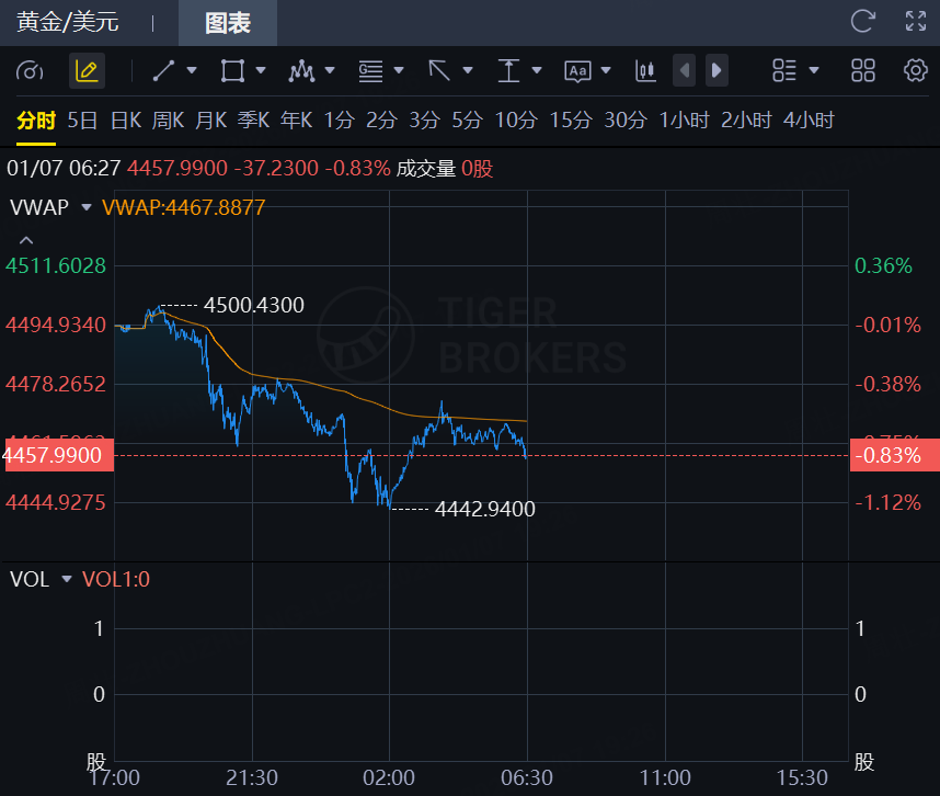 现货黄金小幅走低,截止发稿,跌0.83%,报4457.99美元/盎司;现货白银重挫,截止发稿,跌2.21%,报79.47美元/盎司。