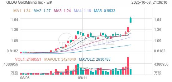 金价屡创新高,黄金股普涨, GoldMining Inc 涨超14%, 哈莫尼黄金、金田涨3%,科尔黛伦矿业涨2.8%。