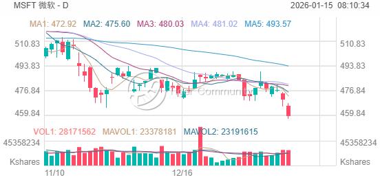 据道琼斯市场数据,微软股价周三下跌 2.4%,至 459.53 美元,为去年 5 月下旬以来的最低水平。