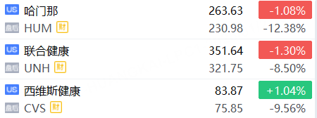 受此消息影响,美股医疗计划概念股盘后全线跳水。哈门那跌超12%,西维斯健康跌超9%,联合健康跌超8%。
