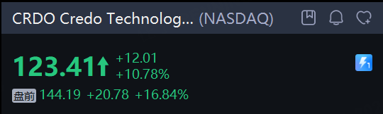 Credo Technology Group Holding Ltd 盘前大涨近17%。公司预计2026财年第三财季营收将在4.04亿美元至4.08亿美元之间,远高于公司此前给出的指引区间上限,也大幅超越了市场普遍预期。此外,公司更新了全年展望,预计本财年营收同比增长将超过200%。