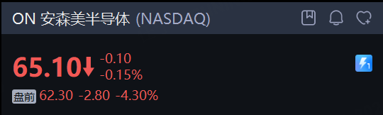 安森美半导体 盘前跌超4%。消息面上,安森美半导体去年第四季度营收同比下滑11%至约15.3亿美元,略好于分析师预期的约15.2亿美元;调整后每股收益为0.64美元,远低于上年同期的约0.95美元,仍超过分析师预期的0.62美元。展望第一季度,安森美预计营收将在14.4亿至15.4亿美元之间,中间值低于分析师预期的15.1亿美元。