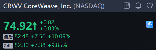 英伟达概念股盘后及夜盘走势强劲,其中,“亲儿子” CoreWeave, Inc. 盘后大涨10%,截至发稿夜盘涨近10%。