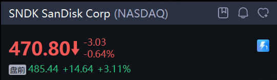 同时,存储概念盘前普涨, SanDisk Corp 涨超3%,西部数据涨2.69%,希捷科技涨2.42%。