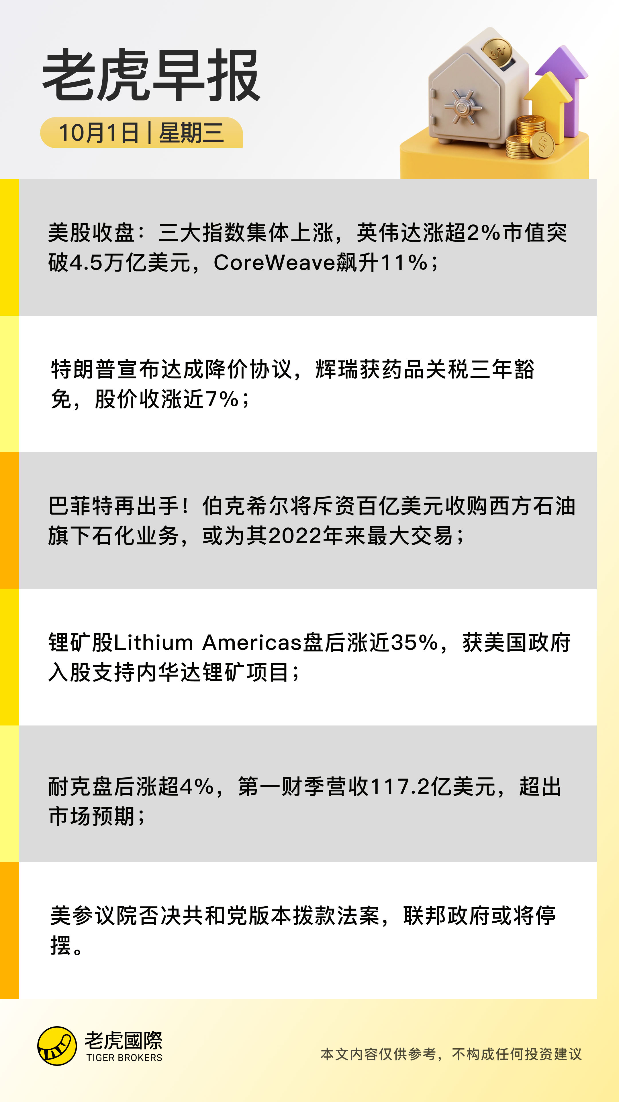 美股收盘|三大指数集体上涨,英伟达再创历史新高,CoreWeave飙升11%;辉瑞降价换关税豁免,股价涨近7%