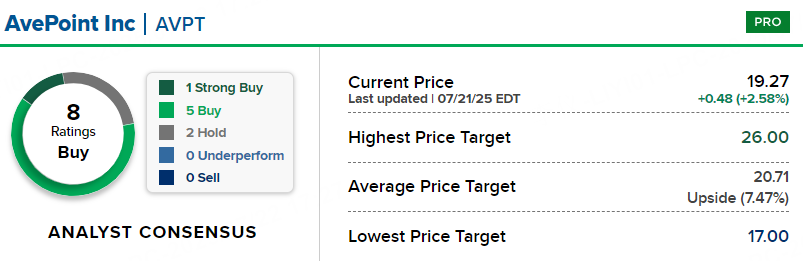 截至目前,AvePoint在2025年股价已上涨近14%。