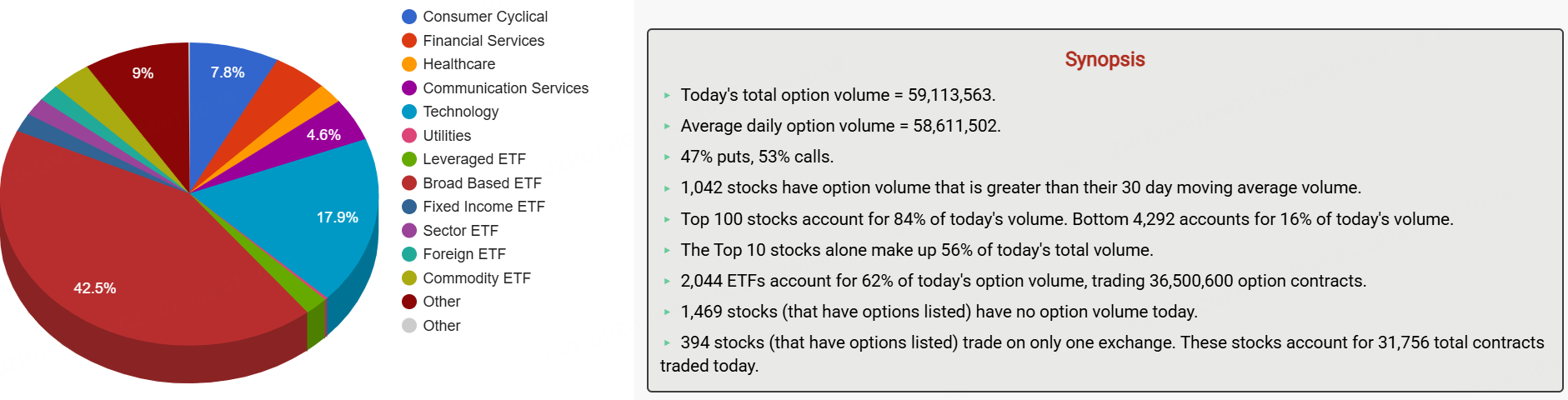期权市场总成交量5911.36万张合约,环比前一交易日(5708.94万张合约)小幅上涨,且高于90日均量(5861.15万张合约),其中看涨期权占比53%。