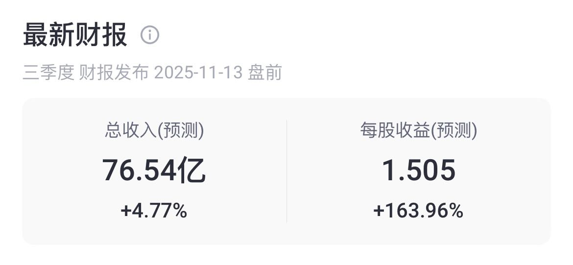 根据Tiger Trade数据,市场一致预期哔哩哔哩第三季度收入76.54亿(人民币,单位下同),同比增长4.77%;每股收益1.505元,同比增长163.96%。