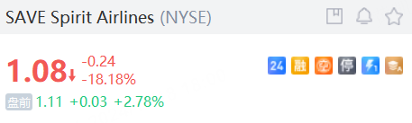 11月18日,Spirit Airlines盘前涨近3%,公司申请破产保护,预计将从纽约证券交易所退市。