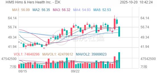 期权方面,Hims & Hers Health当日期权成交53.38万张,较90日均量放大逾2倍,看涨期权占比57.1%,其中于10月17日到期的50美元行使价的看跌期权成交居前,成交超3.1万张。