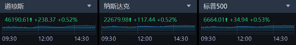 上周五,美股三大指数集体收涨,投资者评估美国总统特朗普关于贸易局势的最新表态,同时区域银行公布的季度业绩缓解了市场对信贷风险的担忧。截至收盘,道指涨238.37点,涨幅为0.52%,报46190.61点;纳指涨117.44点,涨幅为0.52%,报22679.97点;标普500指数涨34.94点,涨幅为0.53%,报6664.01点。
