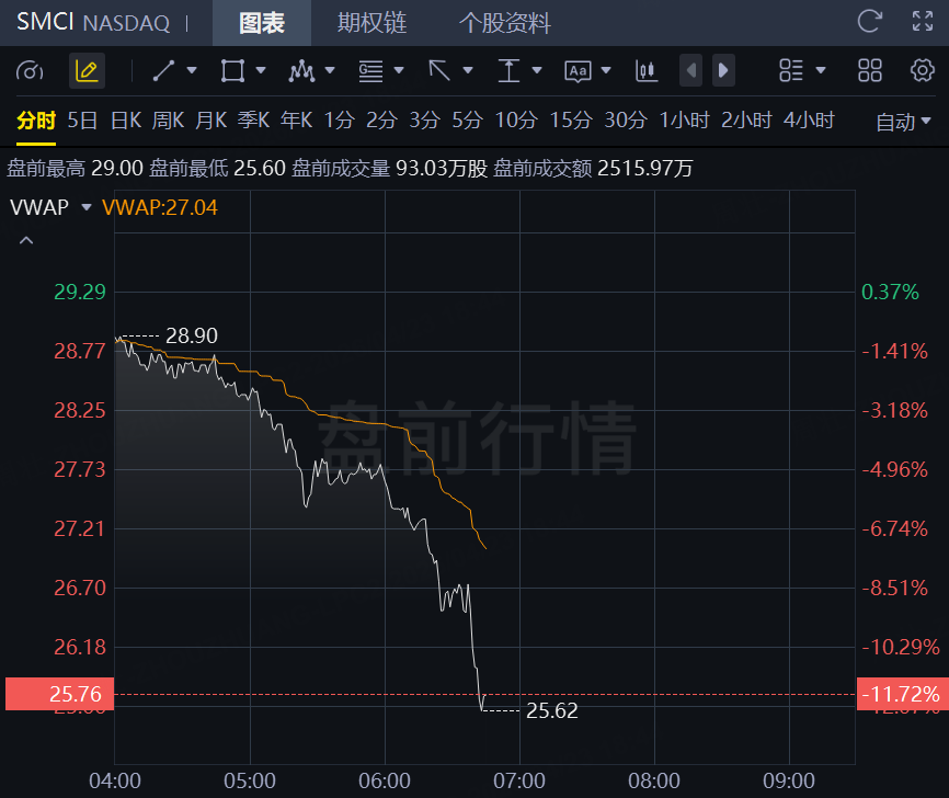 4月23日,超微电脑盘前持续走弱,现大跌近12%。据报道,此前有消息称超微电脑失去了甲骨文一份涉及英伟达GB300 NVL72机架的重大合同。