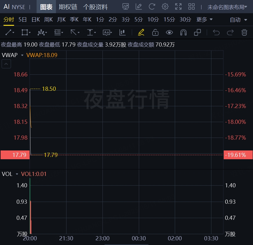 C3.ai暴跌逾19%,2026财年第一季度初步业绩令人失望,且首席执行官离职。