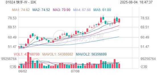 大型科技股集体上涨。快手涨3.22%,花旗发布研报看好快手二季报表现。腾讯涨2.8%,网易、小米集团涨超2%,百度、美团、京东均上涨;阿里巴巴小幅下跌。