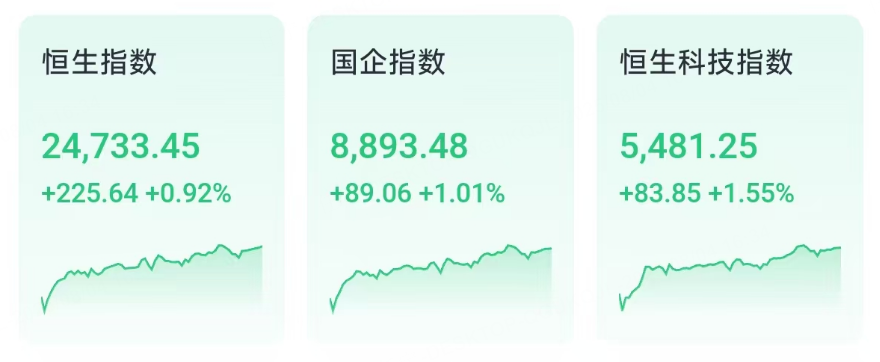 8月4日周一,港股三大指数全天呈现低开高走的单边上涨行情,终结此前的连续下跌。恒生科技指数收涨1.55%,恒生指数、国企指数分别上涨0.92%及1.01%。
