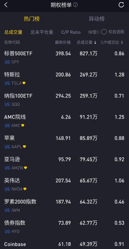 特斯拉期权交易量超过纳指ETF,攀上成交榜单的次席。AMC院线的成交继续保持高位,AMC周三延续涨势,散户行情仍有继续发酵的可能。