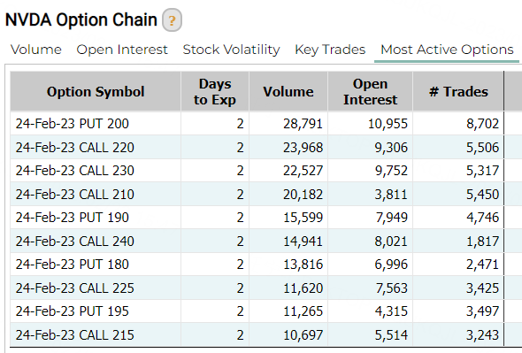 英伟达期权的成交量位居热门榜第七位。英伟达周三盘后公布了2023财年第四季度及全年财报,报告显示,英伟达第四季度营收为60.51亿美元,同比下滑 21%,环比增长2%;净利润为14.14 亿美元,同比下滑53%,环比增长108%;与此同时,英伟达对 2024 财年第一财季营收作出的展望也超出预期。