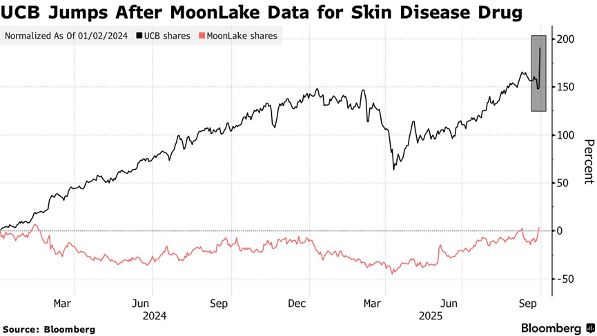 据摩根士丹利分析师称,MoonLake旗下的sonelokimab用于治疗中重度化脓性汗腺炎患者中的关键数据点——通过减少皮肤脓肿和炎症来衡量——在两项研究中合并计算的安慰剂调整后疗效仅为14%。相比之下,UCB的Bimzelx在此前公布的试验结果中显示出18%的安慰剂调整后疗效。摩根大通分析师Richard Vosser则直言,sonelokimab在化脓性汗腺炎中的疗效“无疑劣于”Bimzelx。TD Cowen分析师Stacy Ku表示:“我们预计MoonLake的最新消息将成为投资者的一次重大清算事件。”
