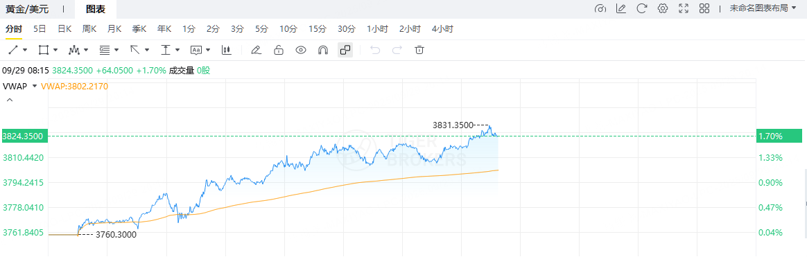 现货黄金一度突破3830美元/盎司,续创历史新高。
