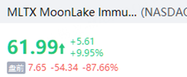 Moon Lake Immunotherapeutics大跌超87%,公司发布了其Vela三期化脓性汗腺炎临床项目的第16周试验结果,目前药物的晚期临床试验数据不及预期。