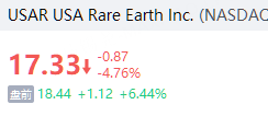 美国稀土公司USA Rare Earth涨超6%!消息面上,公司拟以1亿美元现金和674万股普通股收购稀土金属制造商LCM公司。