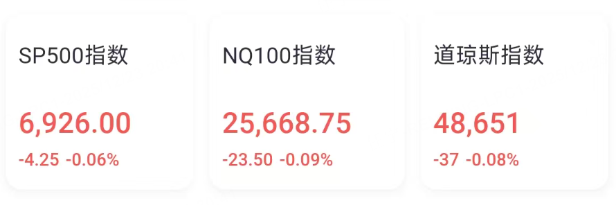 12月23日周二,美股三大指数期货在盘前交易时段微跌。今日关注:美国第三季度实际GDP数据;美国10月耐用品订单数据;美国12月谘商会消费者信心指数。
