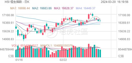 3月20日周三,港股三大指数集体收涨,大市交易量继续低迷。截止收盘,恒指涨0.08%,国指涨0.41%,恒生科技指数涨0.65%。